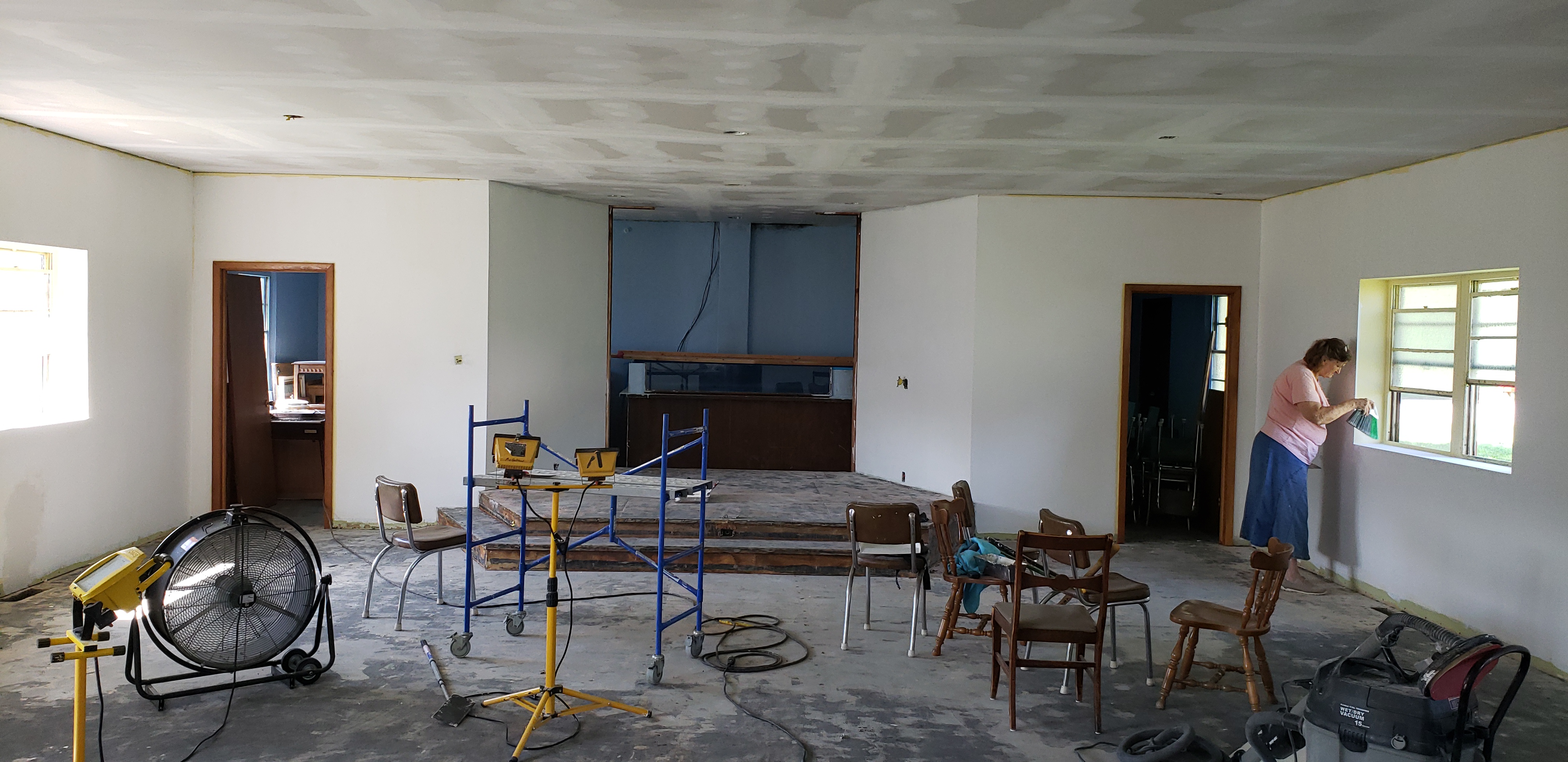 Our New Water Line Is In!Working on the church signNew Light In The Church SignPlumbing to get doneMy girls and my dad working on the church signThe bathrooms need some updating and repairsBro Tim and his’ helperThe girls helping Wall out, the carpet is next to go!Going to be putting a clean out in, so missionaries have a place for campers! That is 6 feet down and all hand dug, praise God for strength to do it.A big thank you to all who came to help hang sheetrock and thanks to many more that wanted to help!We got a big part of the sanctuary started today.Most of the old carpet is gone now too.Lots of floor scraping to get done, please pray only few weeks until we start services. New doors are coming in on Friday. Making the women’s bathroom handicap accessible. New paint soon.The baby is in training!The McHattons, making the green walls disappear, thank you. The ladies’ restroom is looking a lot better. The men’s restroom is going good.Sanctuary walls are primed.Praise God, the new carpet has arrived. A BIG THANK YOU to those who came over to help get it in the church!The big roll is almost 1000 pounds .The new fans and fixtures are up!Most of the carpet in the sanctuary in done and the rest should be done tomorrow. The new front doors are in and they look great!God Is so Good!!!! The pews are getting moved in tomorrow. Glory to God, the new ac unit came today. Thank you to my Father(God) for supplying it and Bro Larry Adams for bringing it out!The new baptistry came today too. The new baptistry going in.The AC unit is part of the way in and working. Finally cleared out this Sunday School room and got it set up for VBS this week!!!!We now have water to the baptistry. Can’t wait to get to use it. New BuildingOld BuildingSteeple in placeKids Helping move some dirt!Thank you to a very special lady in the church for painting this in the baptistry!Our New Church Sign!Coming This Spring, Can Not Wait To Put Up The New Church Sign, God Has Been So Good To Our Church!!!!Our New Church Sign, Praise God For His’ Many Blessings!